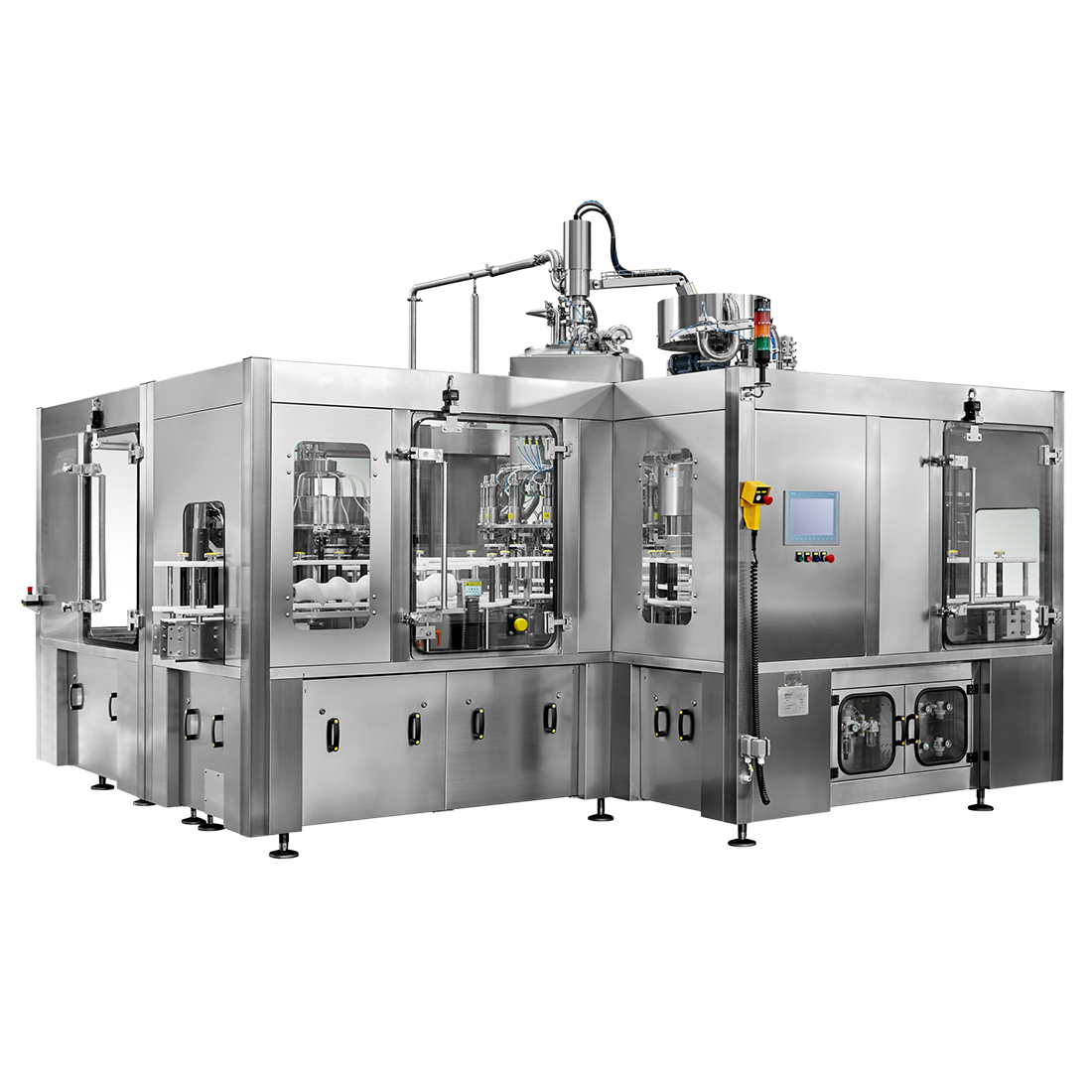 該設(shè)備洗瓶部分由翻轉(zhuǎn)內(nèi)洗及瓶身外噴沖兩部分清洗組成,洗瓶工藝包括消毒洗、清水洗、滴干三種工藝,通過對(duì)瓶子的沖洗確保灌裝前瓶子的潔凈;在灌裝部分,包括紅外線檢測及流量計(jì)定量灌裝兩種可選灌裝方式。灌裝過程穩(wěn)定,液位精準(zhǔn);在旋蓋方面,使用最新研發(fā)針對(duì)大口徑瓶蓋的旋蓋頭,旋蓋頭扭力可無級(jí)調(diào)速,旋蓋機(jī)旋蓋速度快,扭力穩(wěn)定。